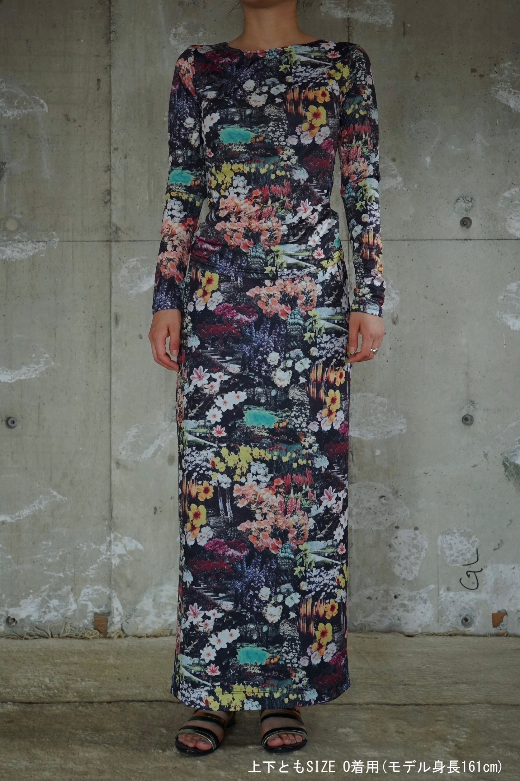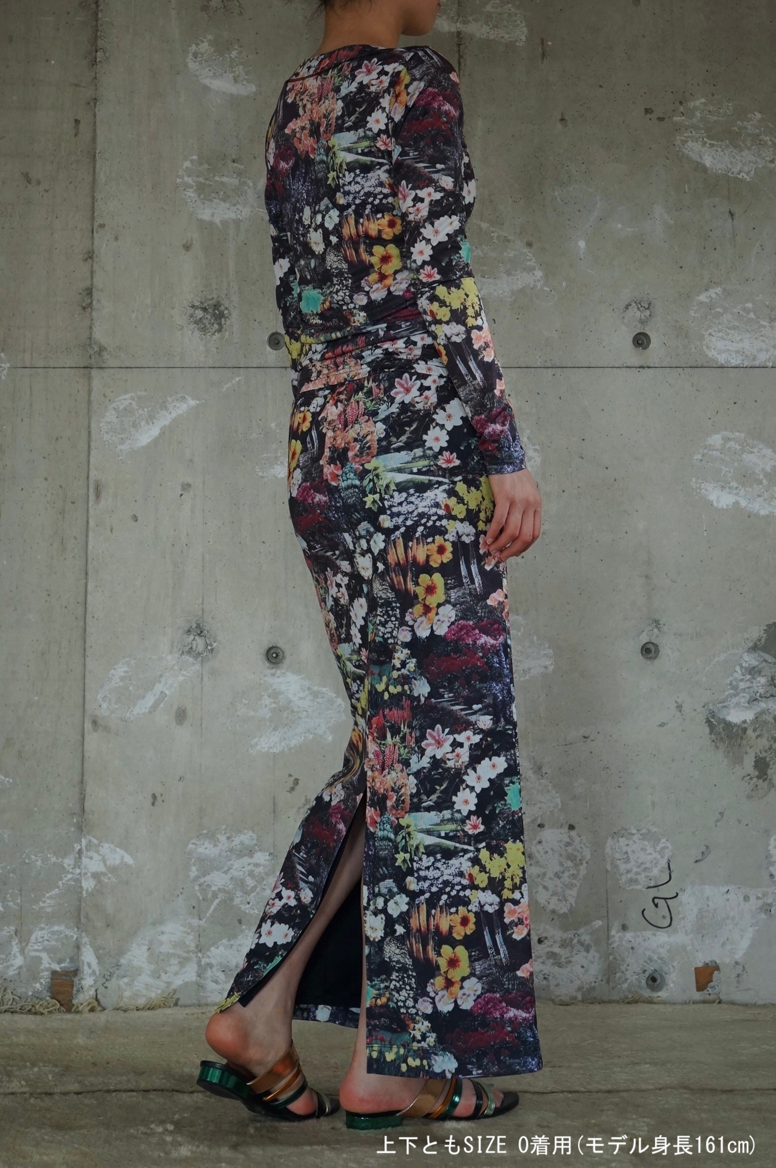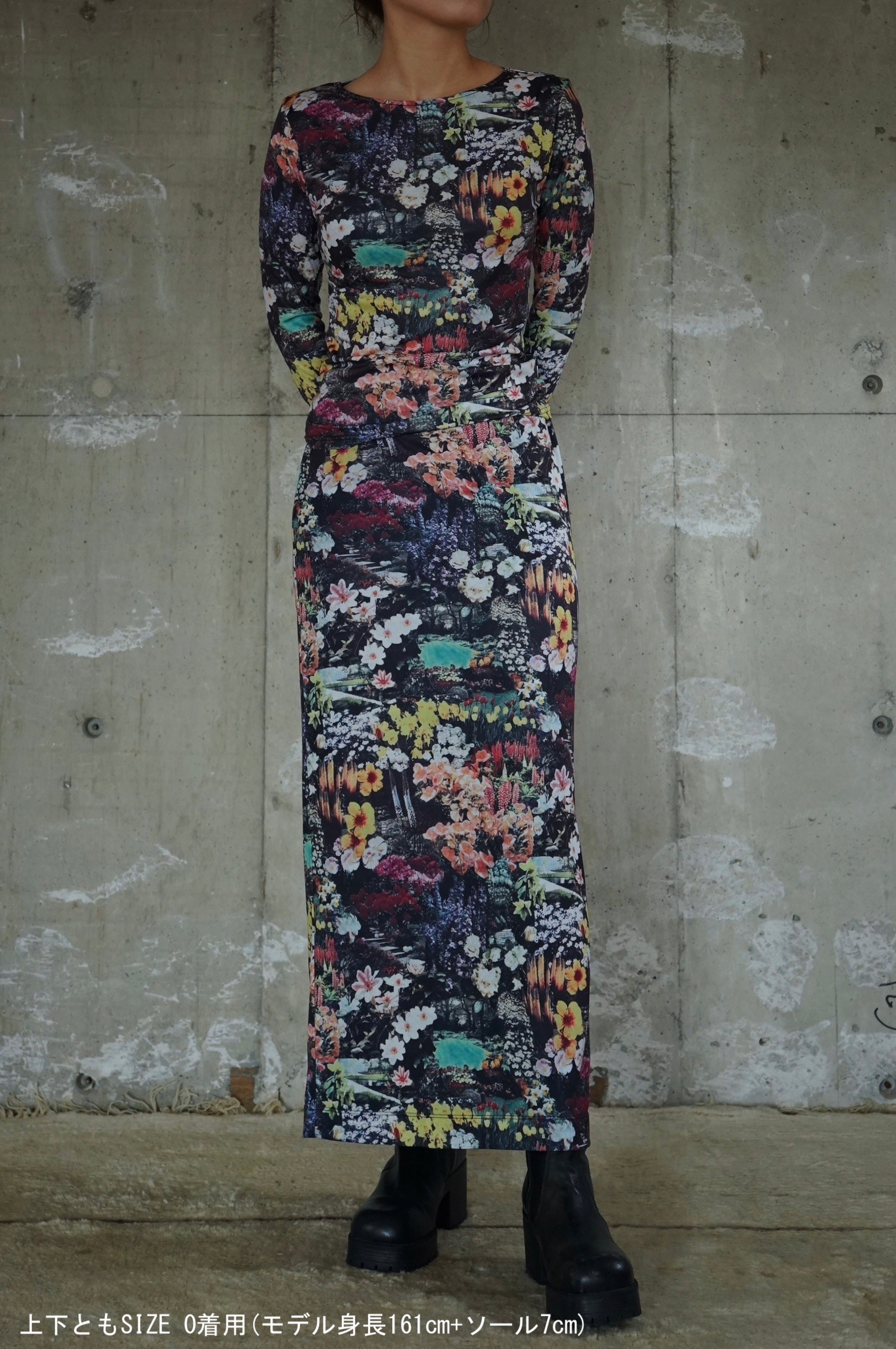 上下セットアップで合わせれば1枚のドレスのような印象に。