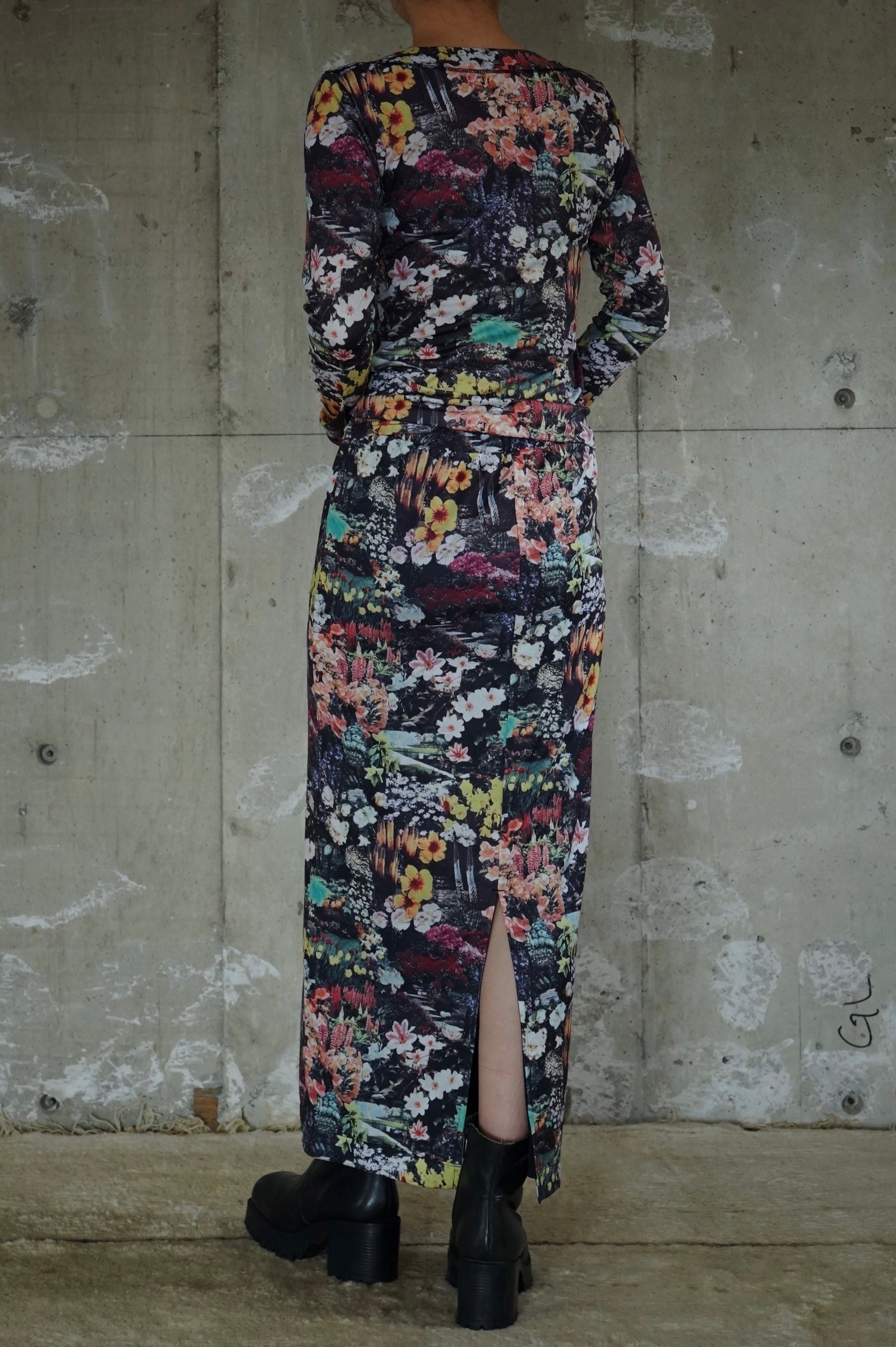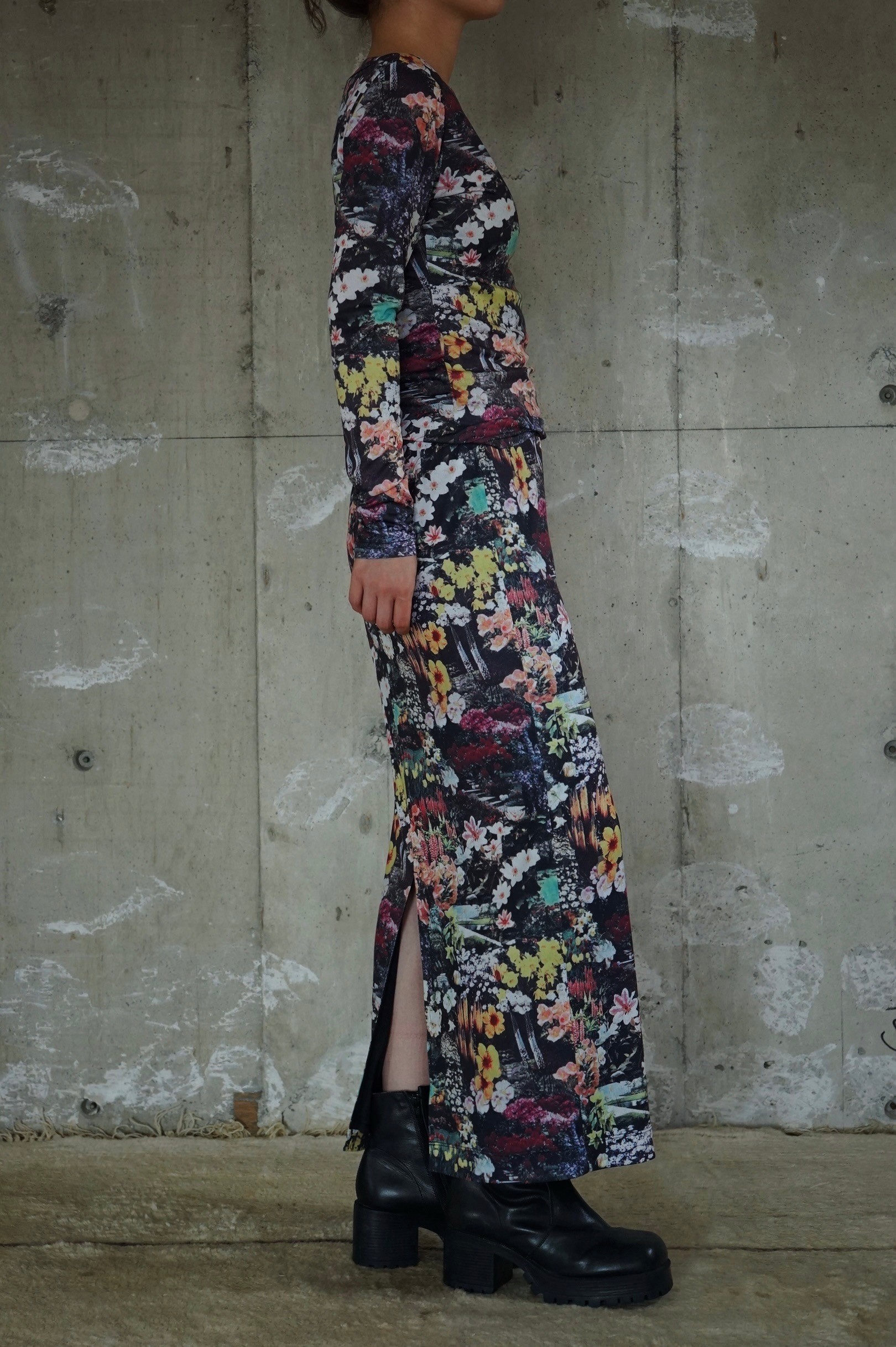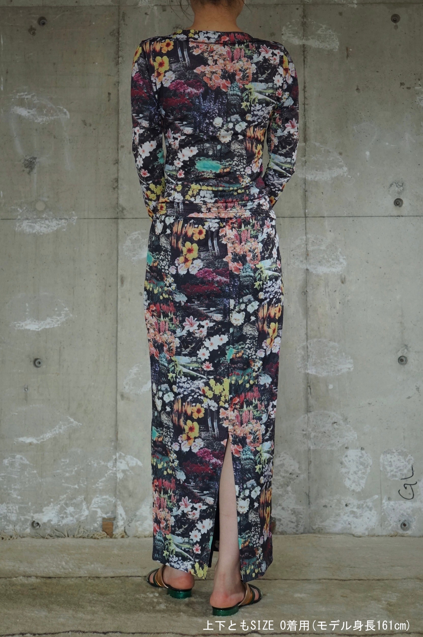 上下セットアップで合わせれば1枚のドレスのような印象に。