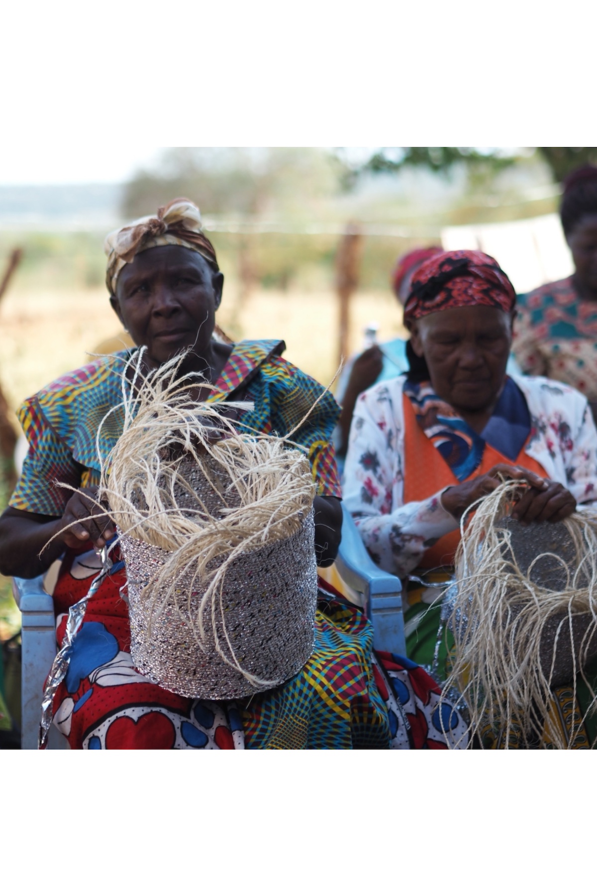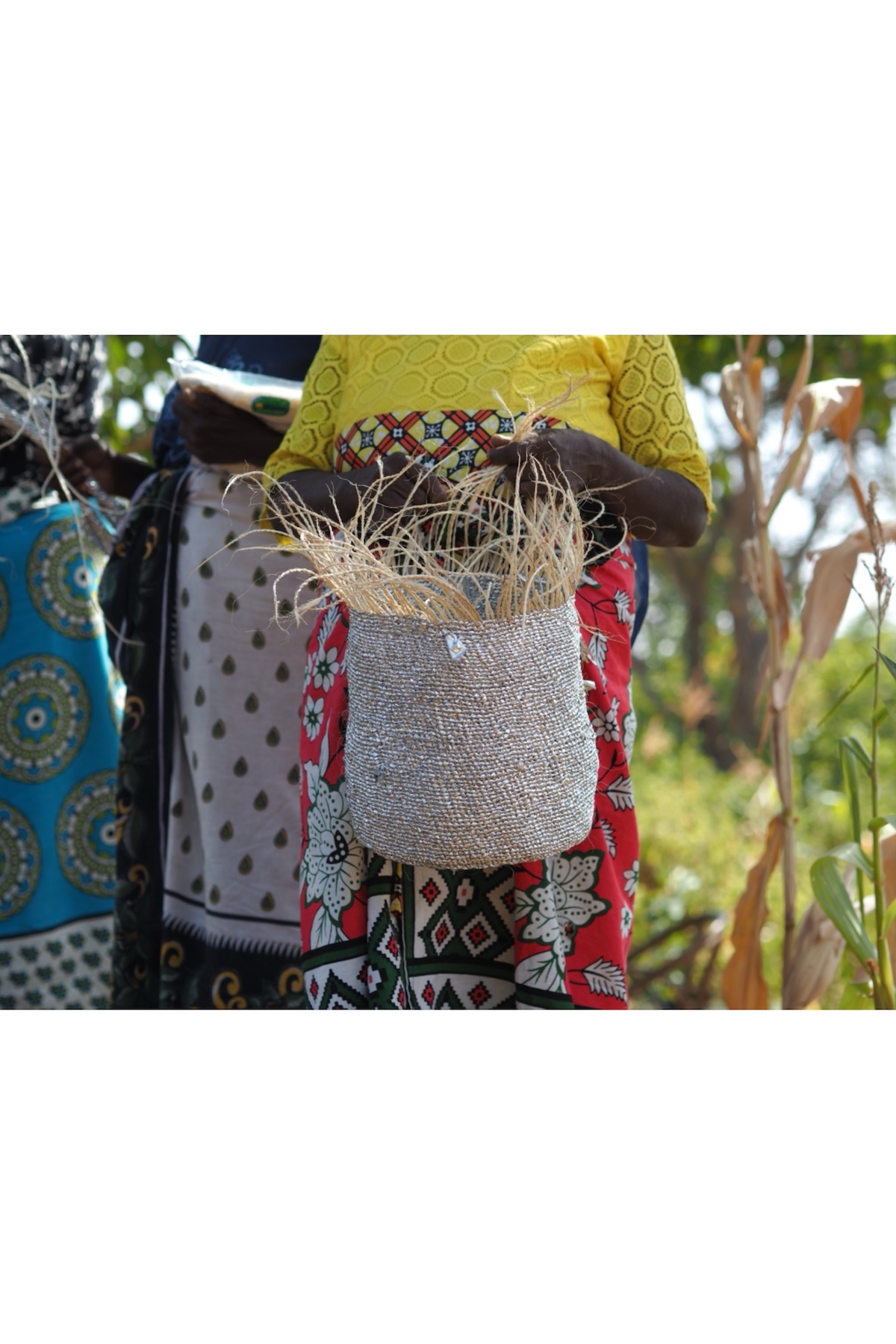 ケニア・カンバ地方で女性たちの手によって一つ一つ手編みされたバッグ。