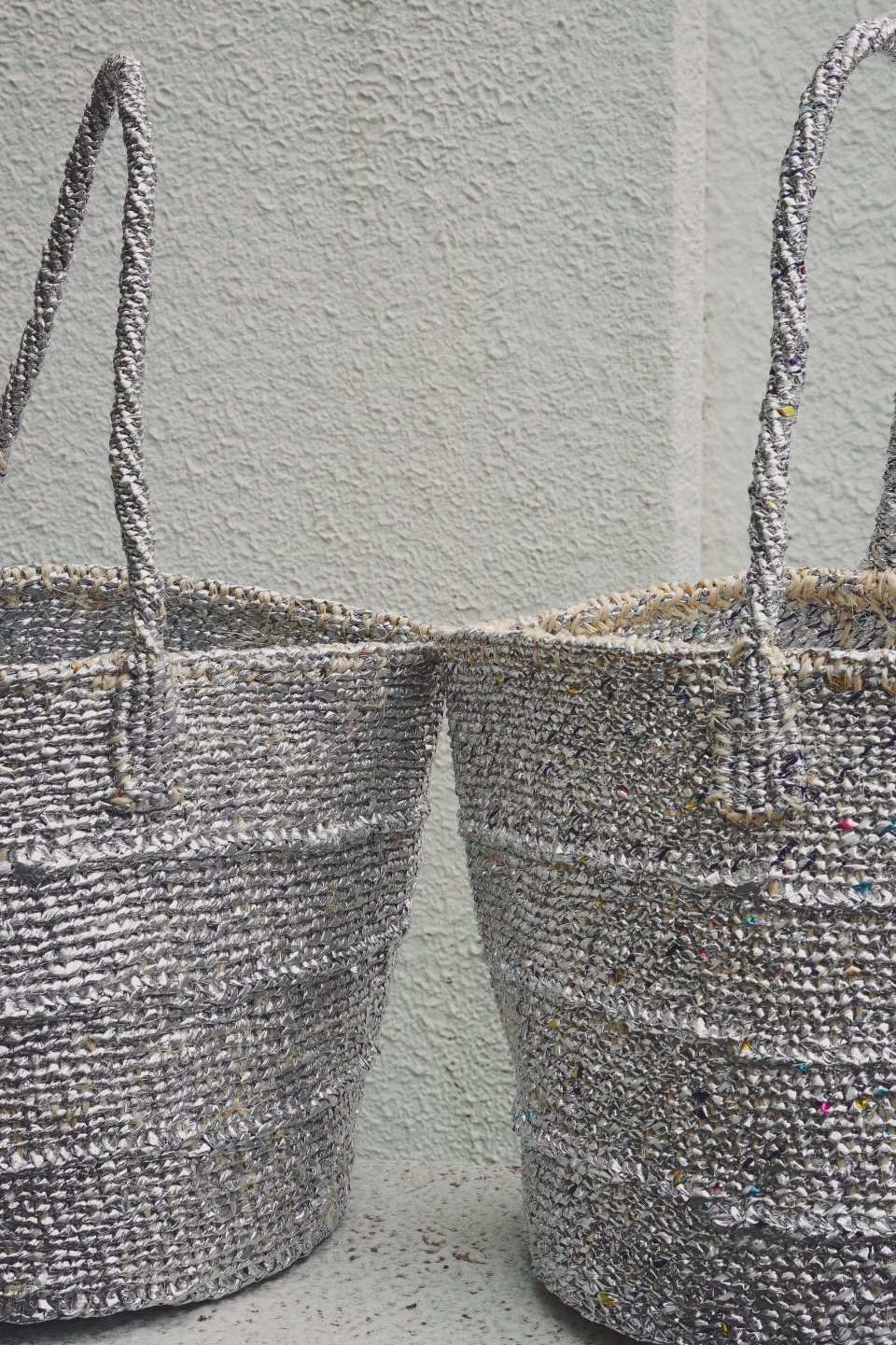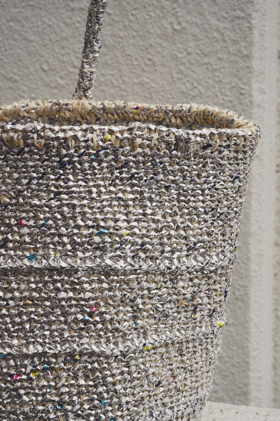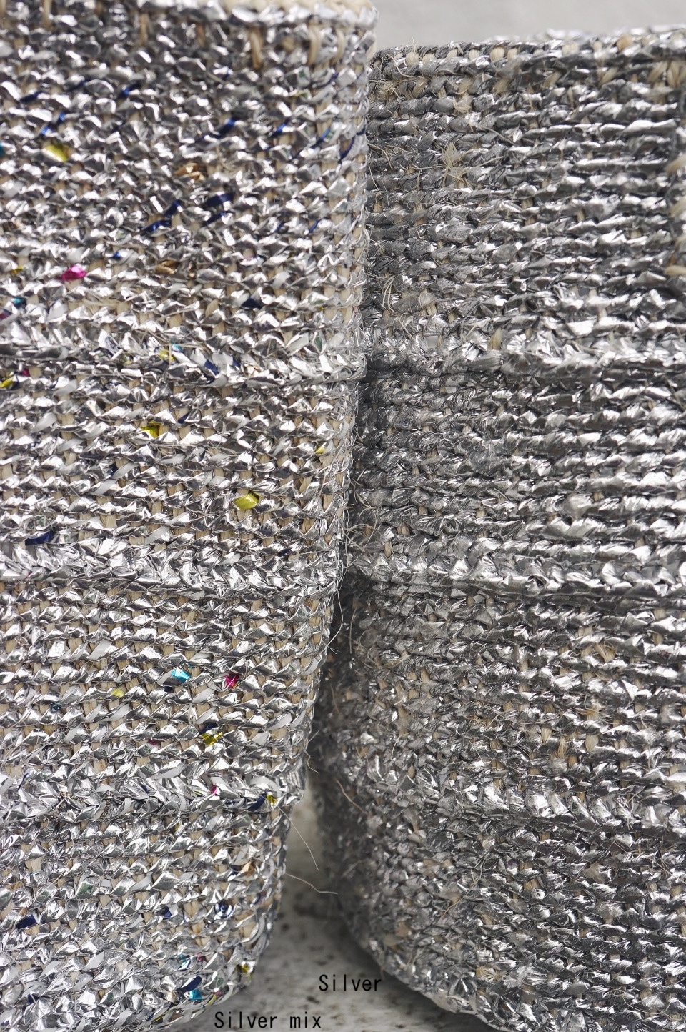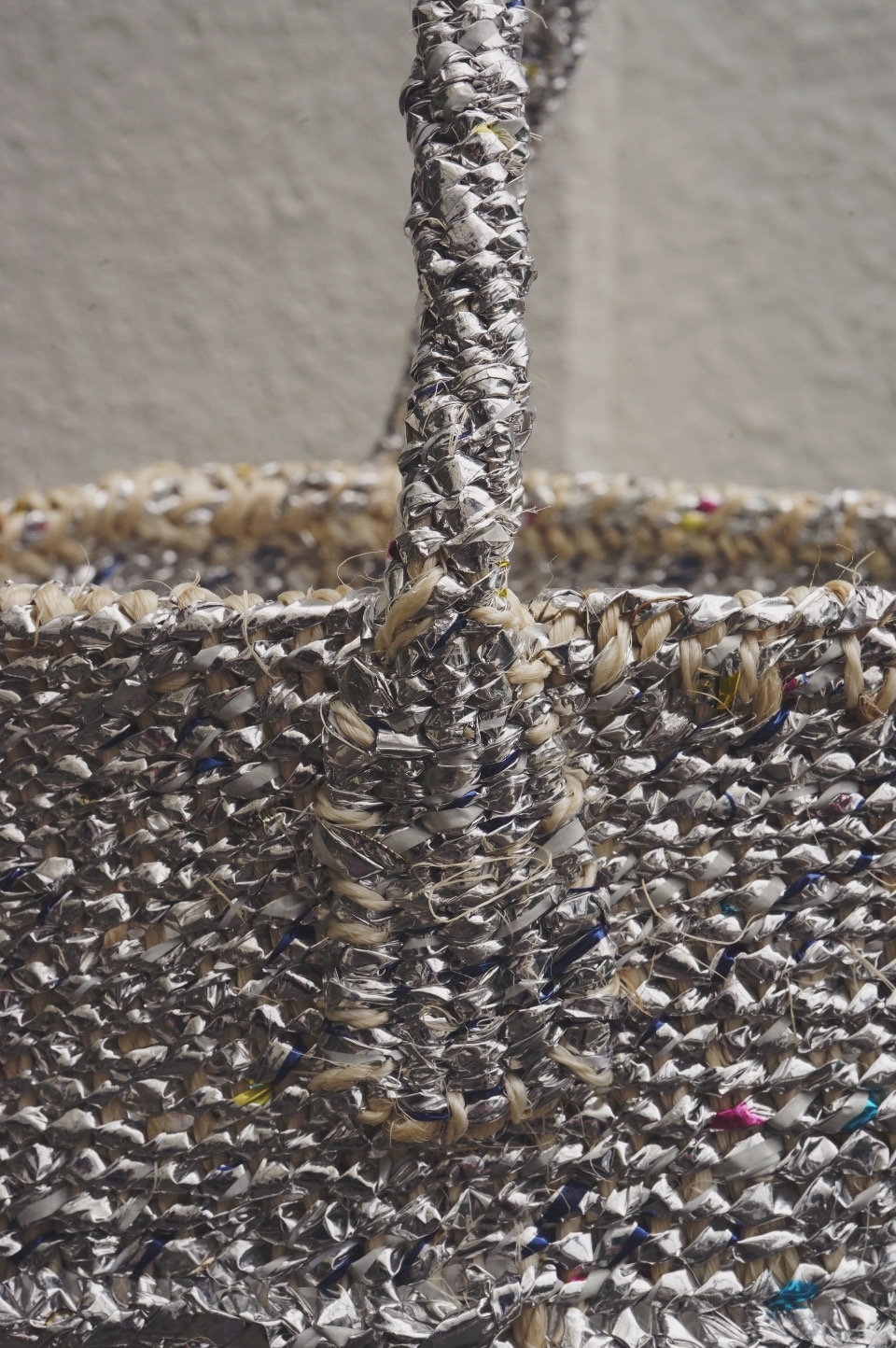 アップサイクル材のメタリック&カラフルな色合いと