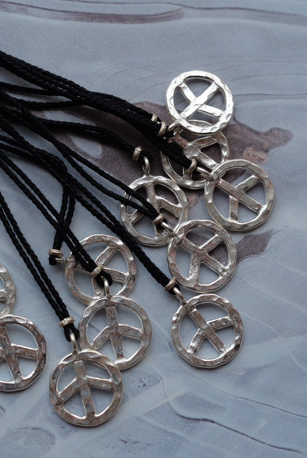 ピースマークのモチーフをつかい、