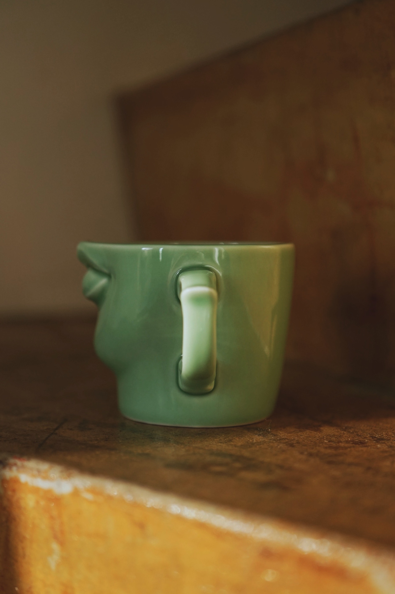 このLIPS MUG JADEはベースの磁器に青磁釉を施して作られています。