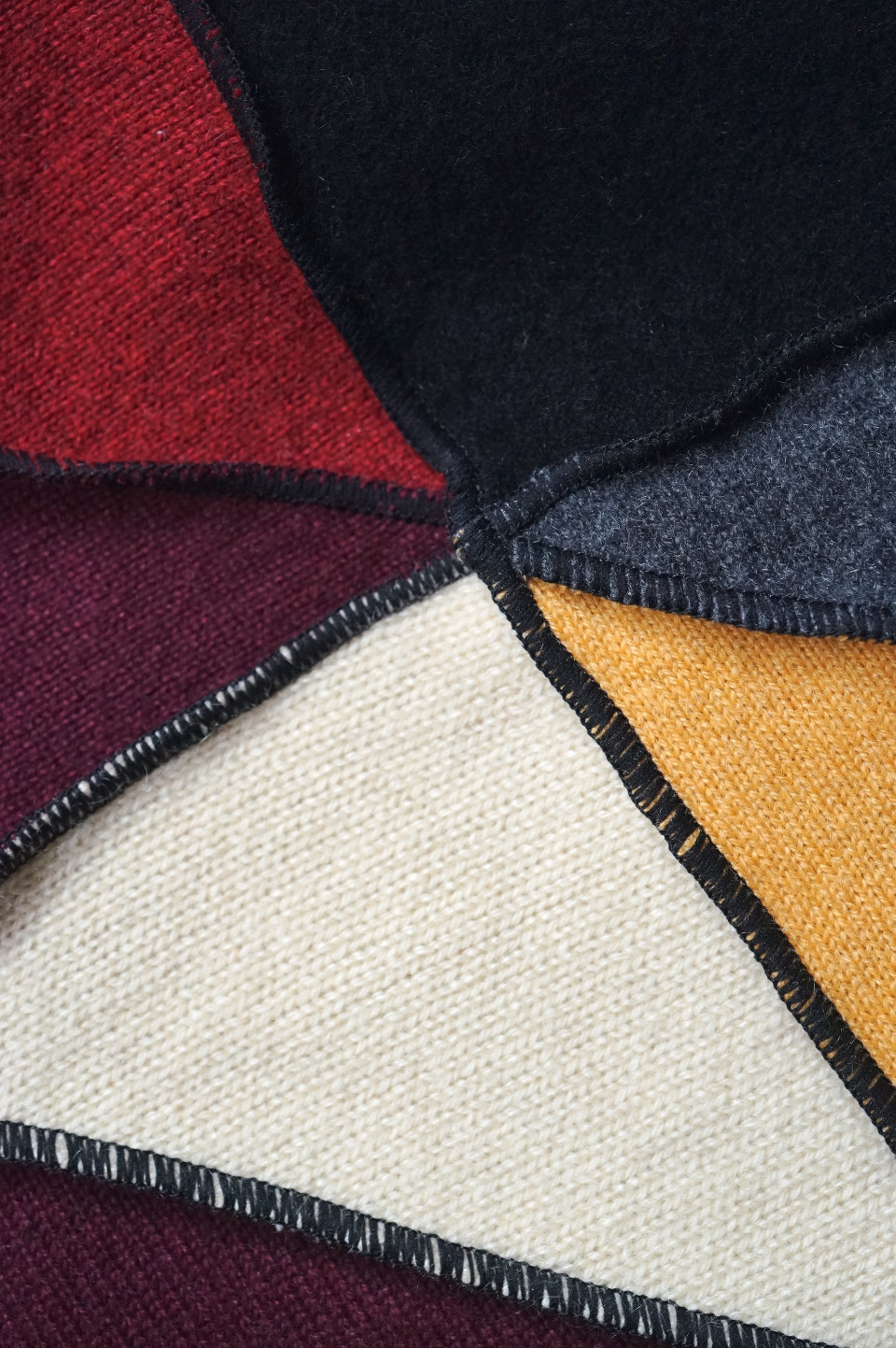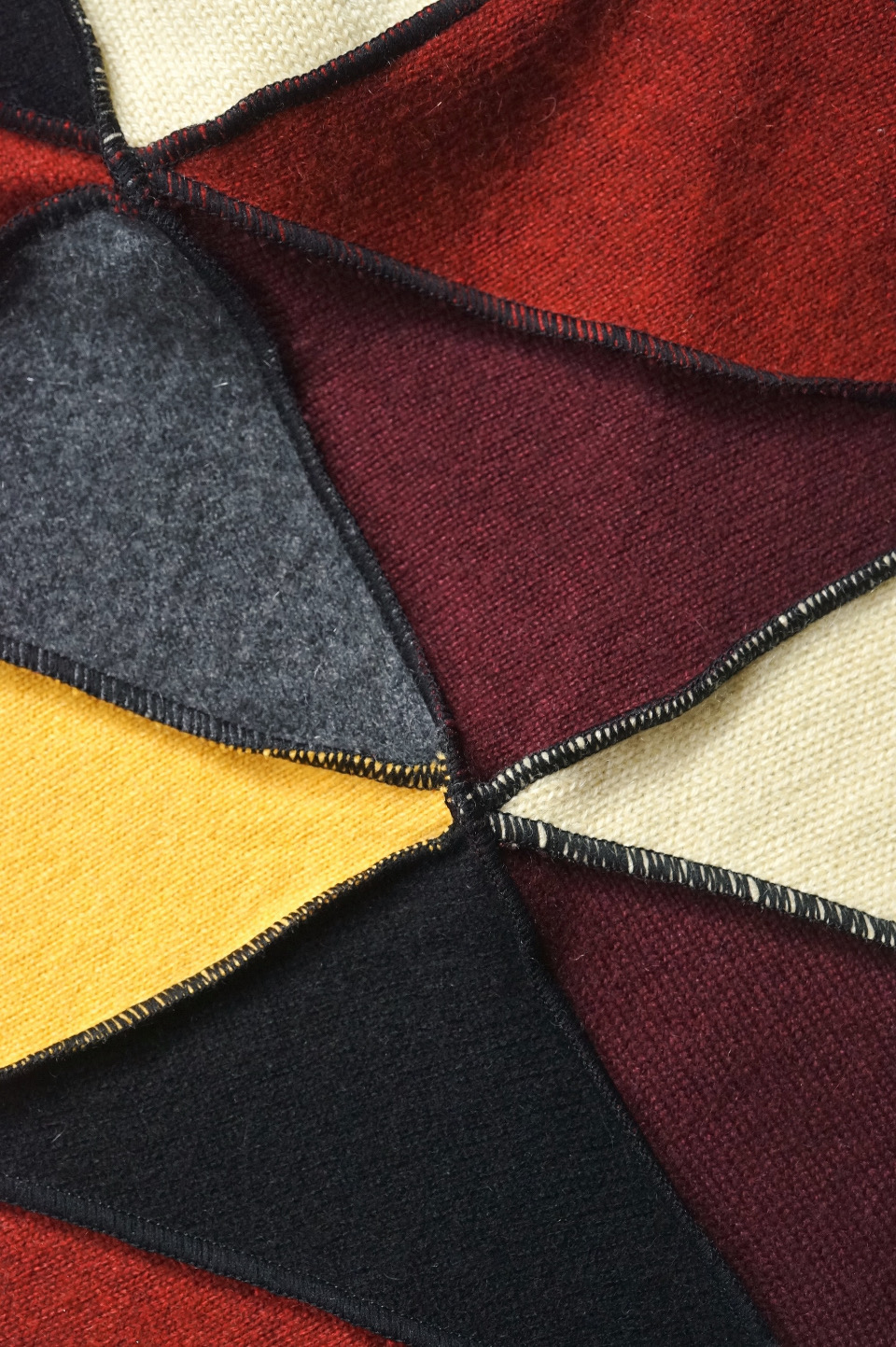 トライアングルモチーフとメローロックステッチが生み出す