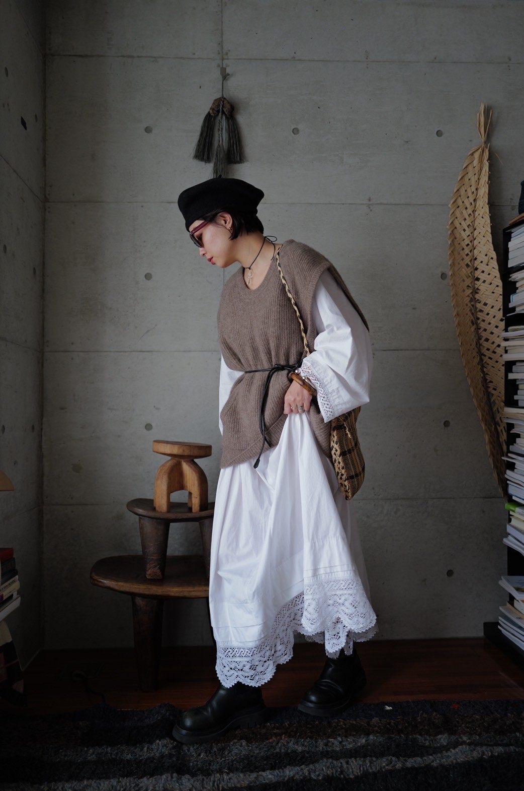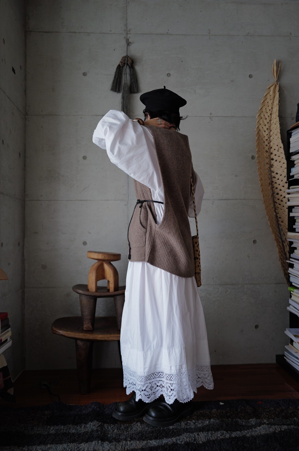 インにボリューム感のあるアイテムも重ね着できるよう