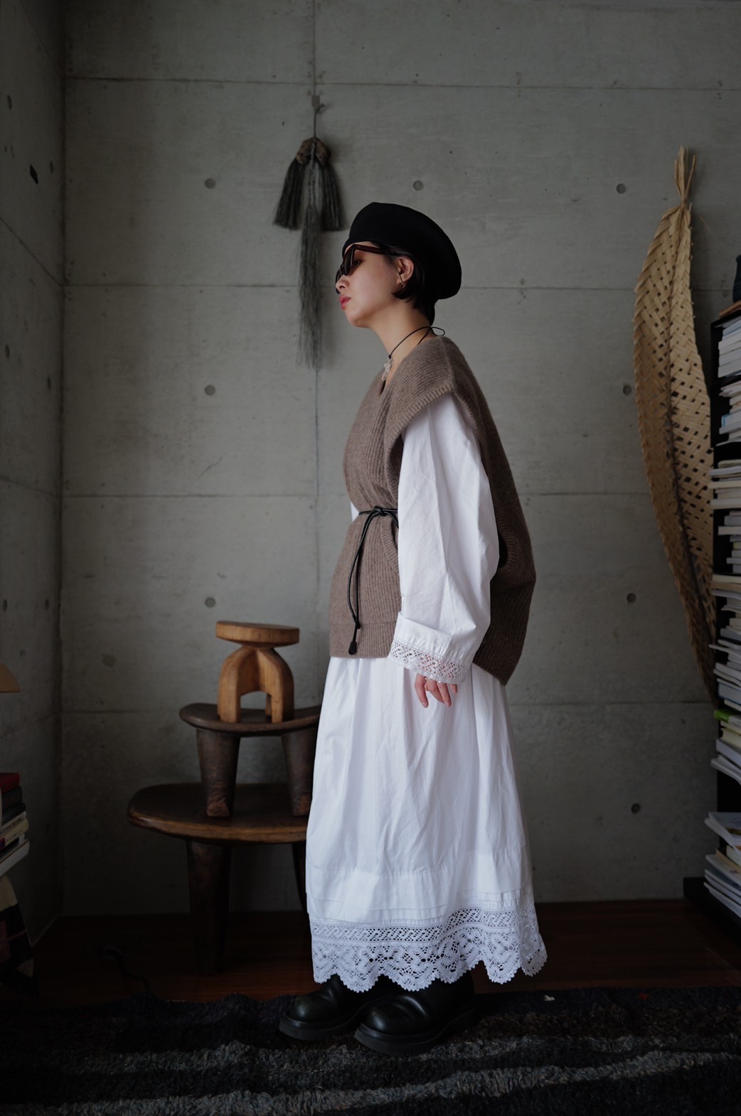 編み地で仕立てたレイヤードベスト。