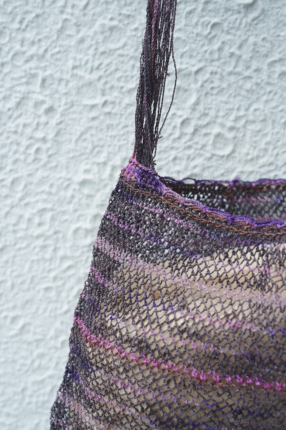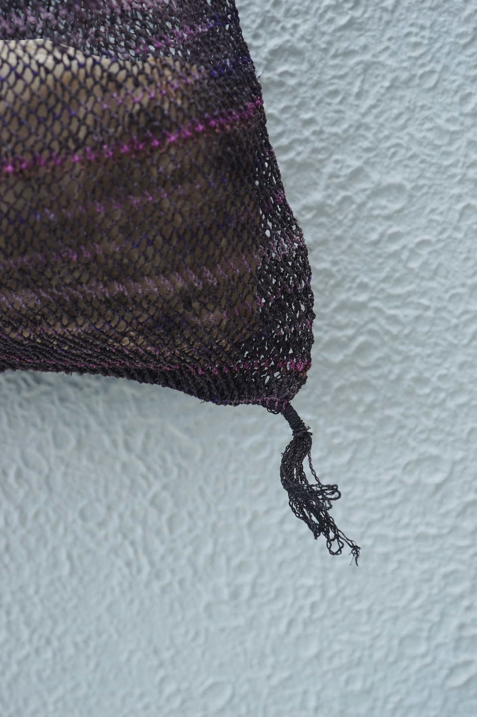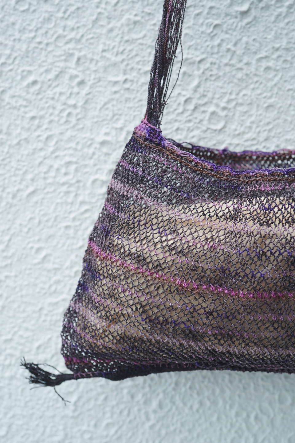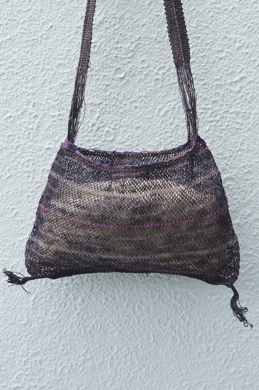 こちらのバッグたちも漁網の技法を用いた編み地で