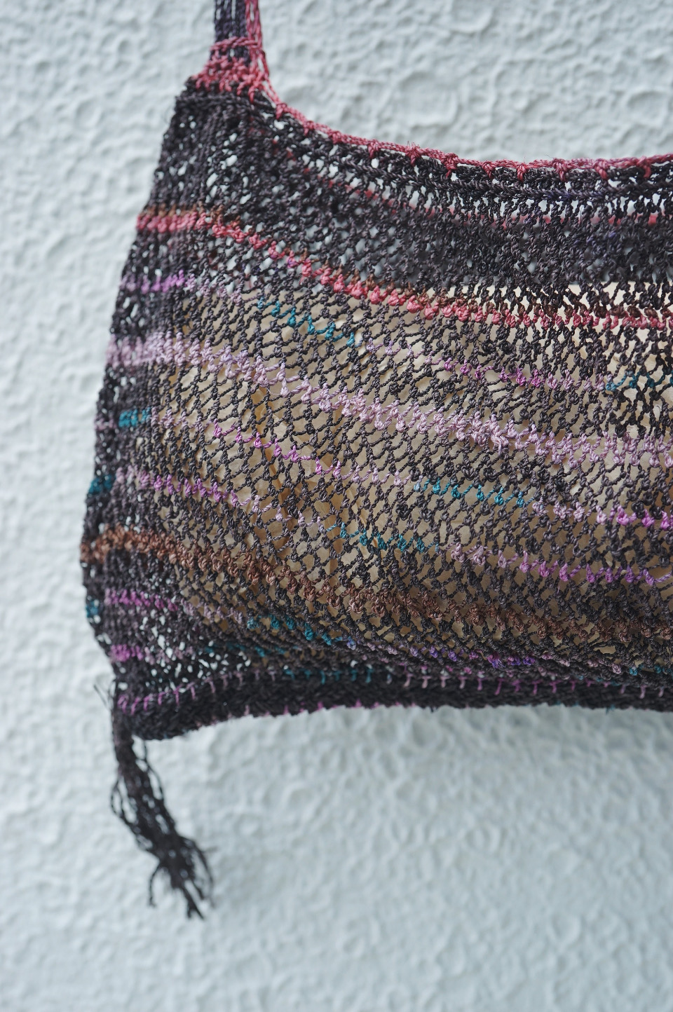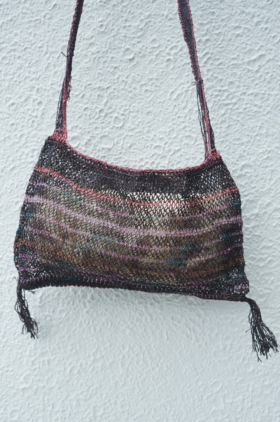 こちらのバッグたちも漁網の技法を用いた編み地で
