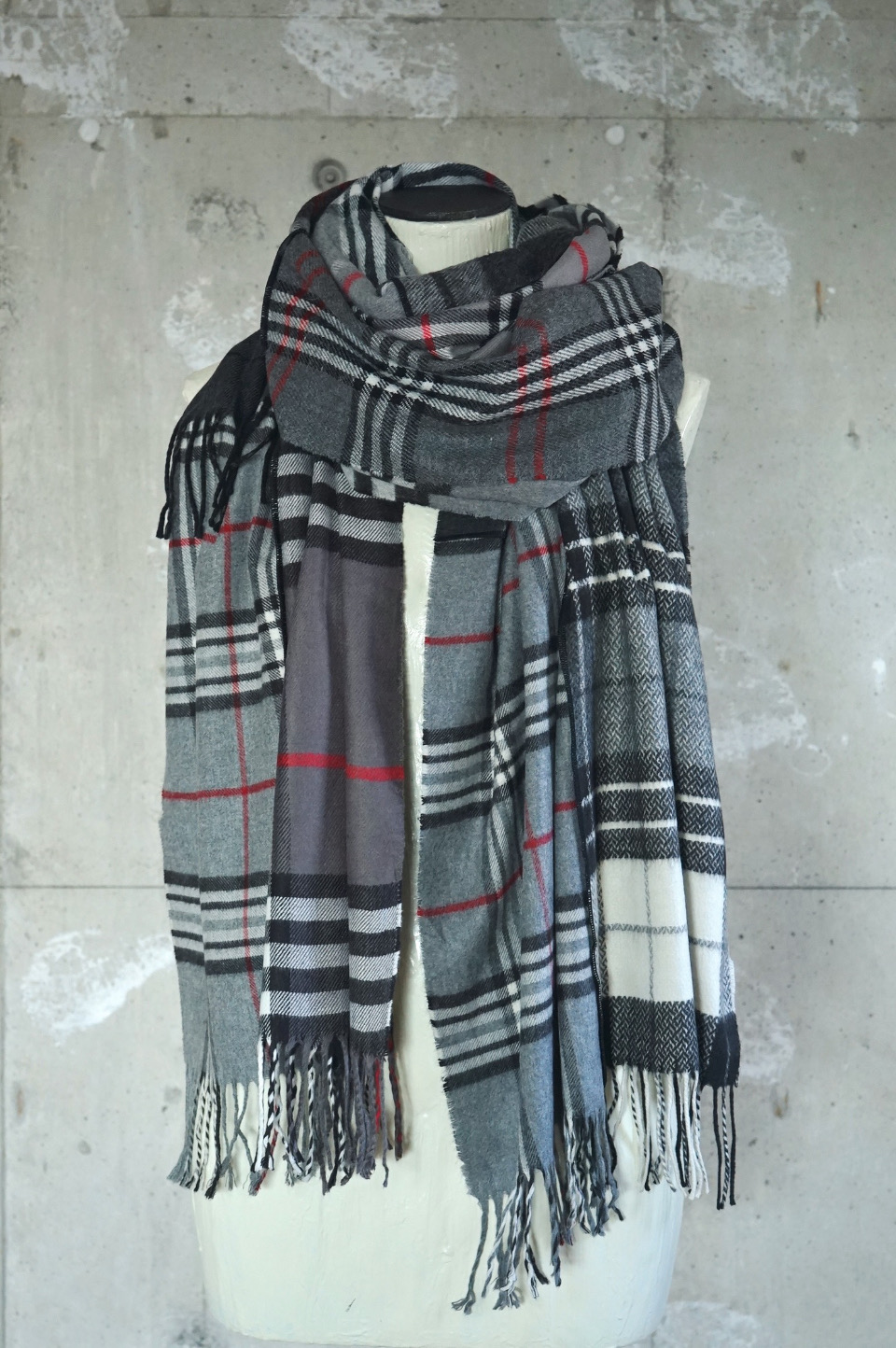 DEPT CRAZY CHECK LONG SCARF / 510 Grey tone