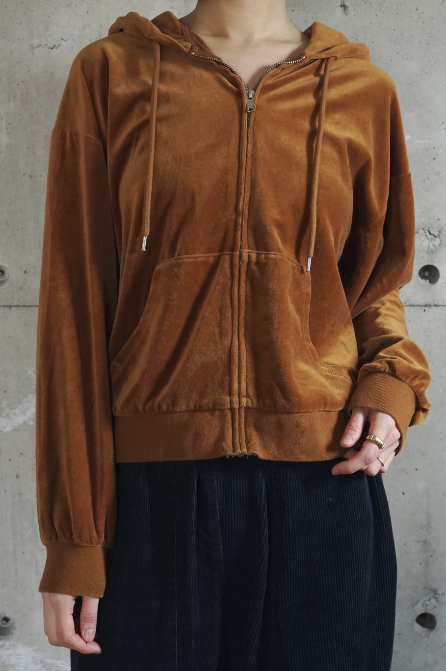 Stretch Velour Zip-Up Hoodie