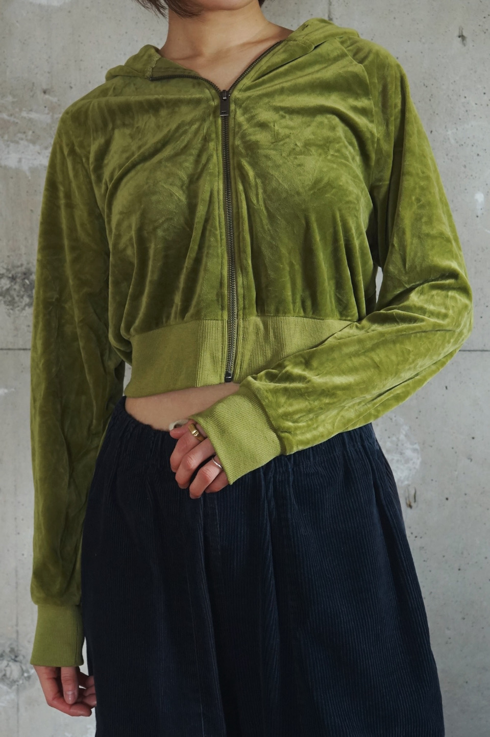 Velour Cropped Zip-Up Hoodie
