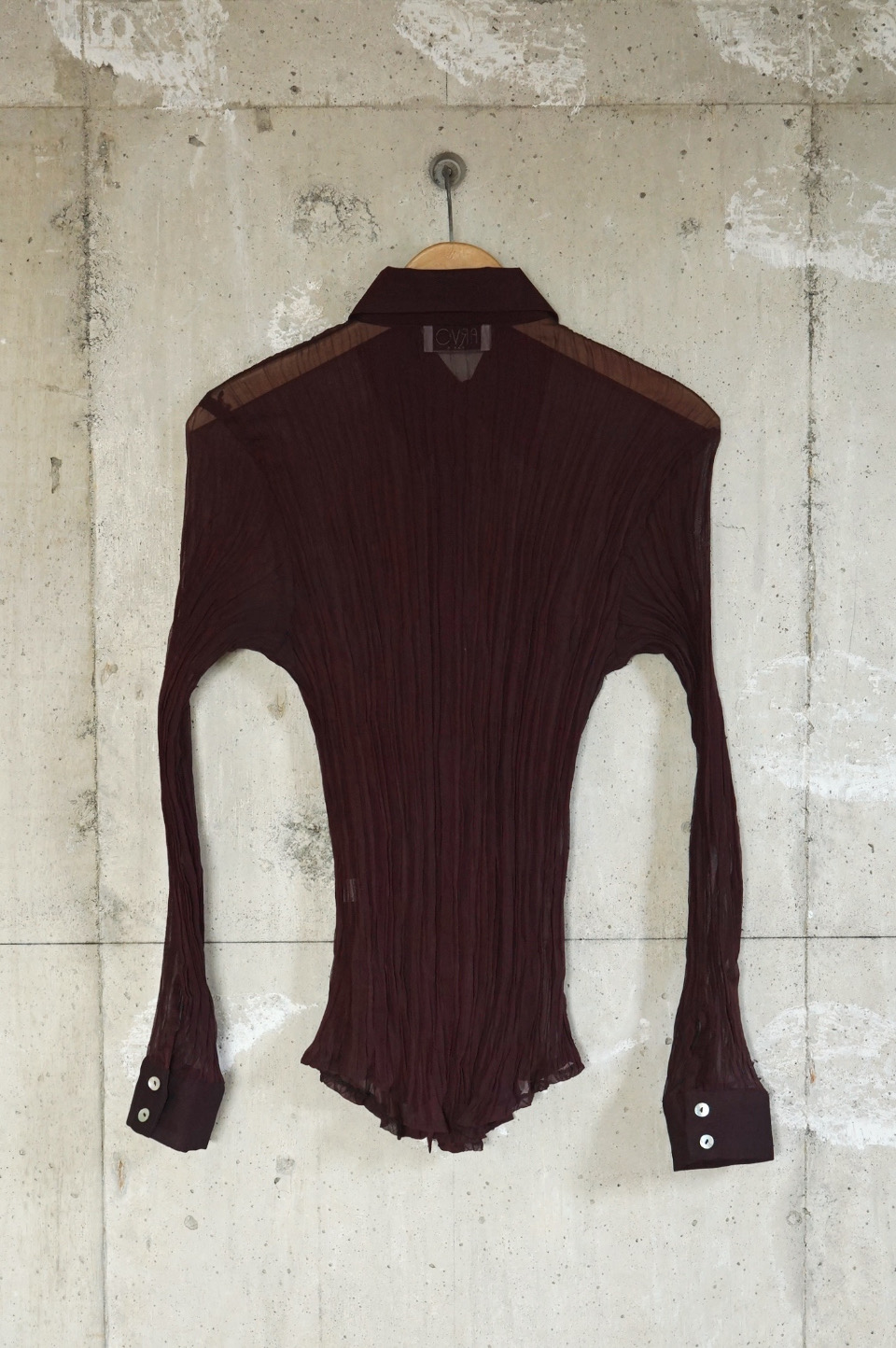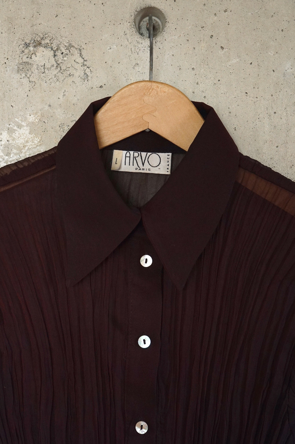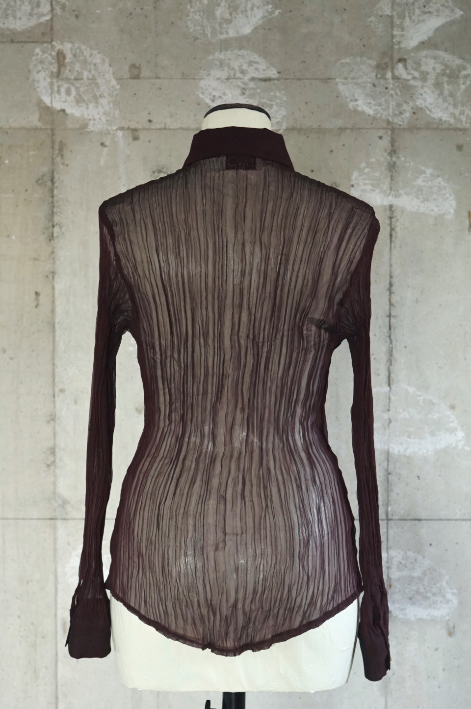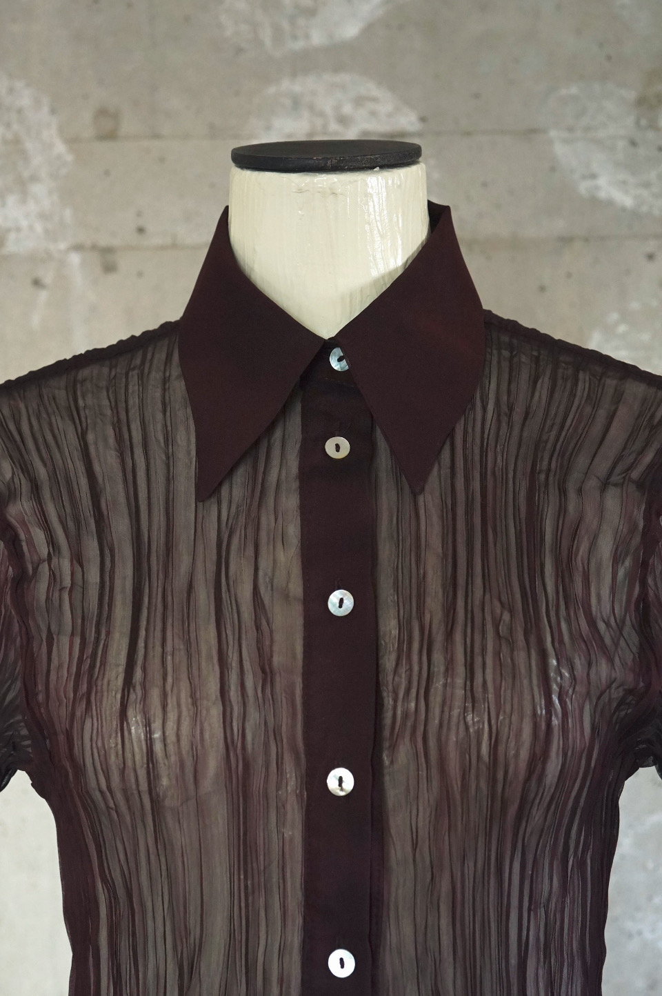 シアー素材のプリーツが軽やかな印象のブラウス。