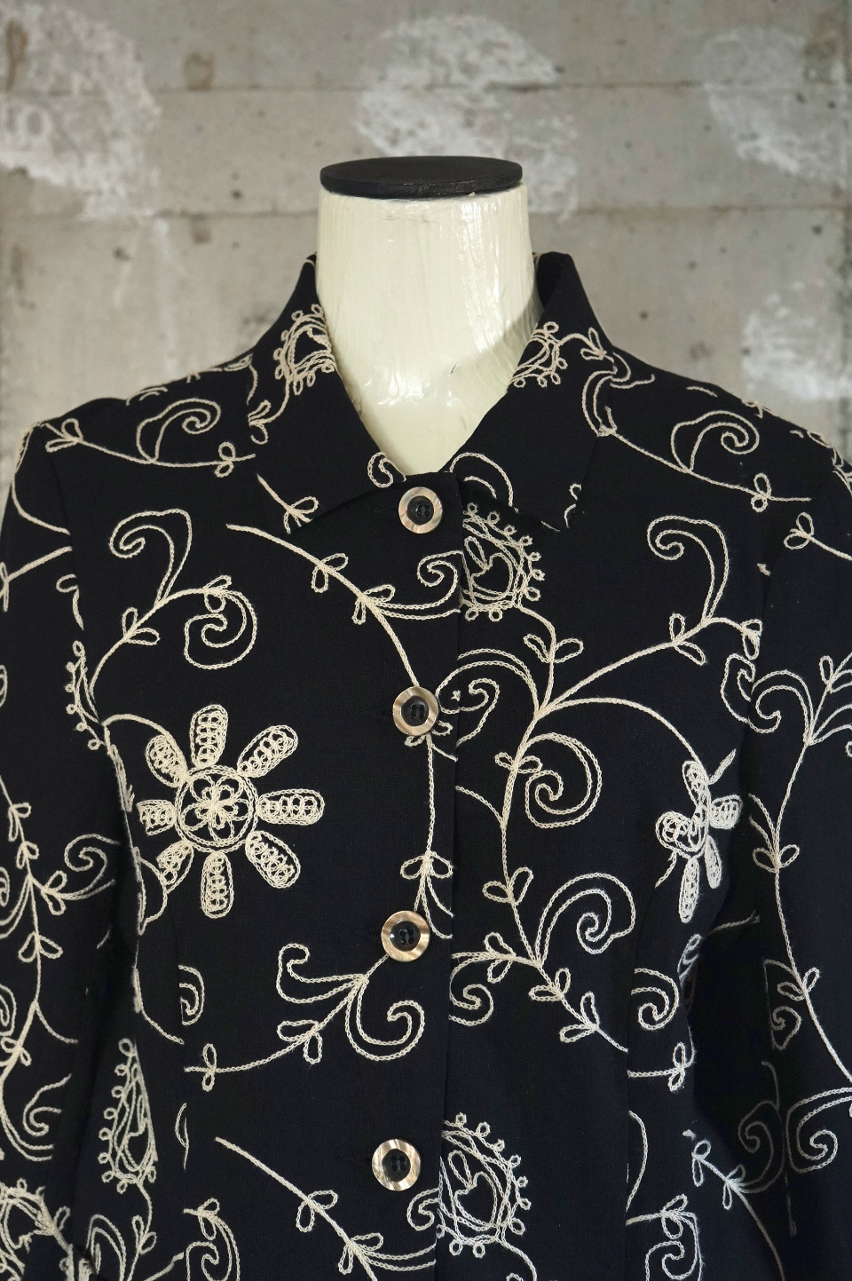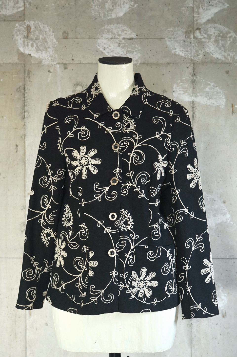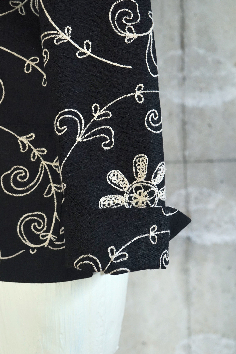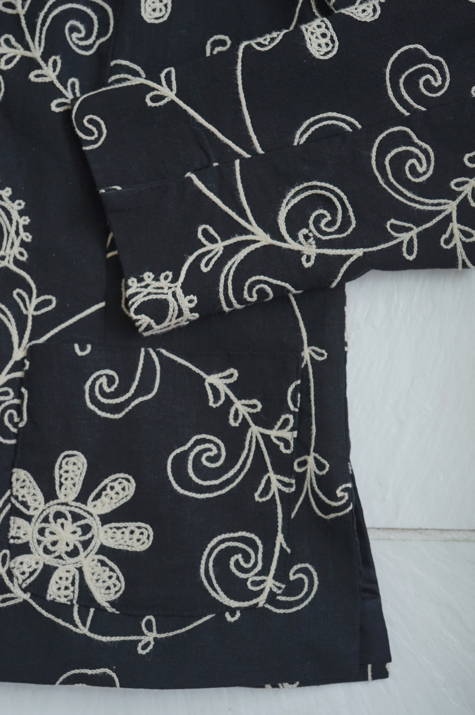 全面にチェーンステッチ刺繍が施されたジャケットは、