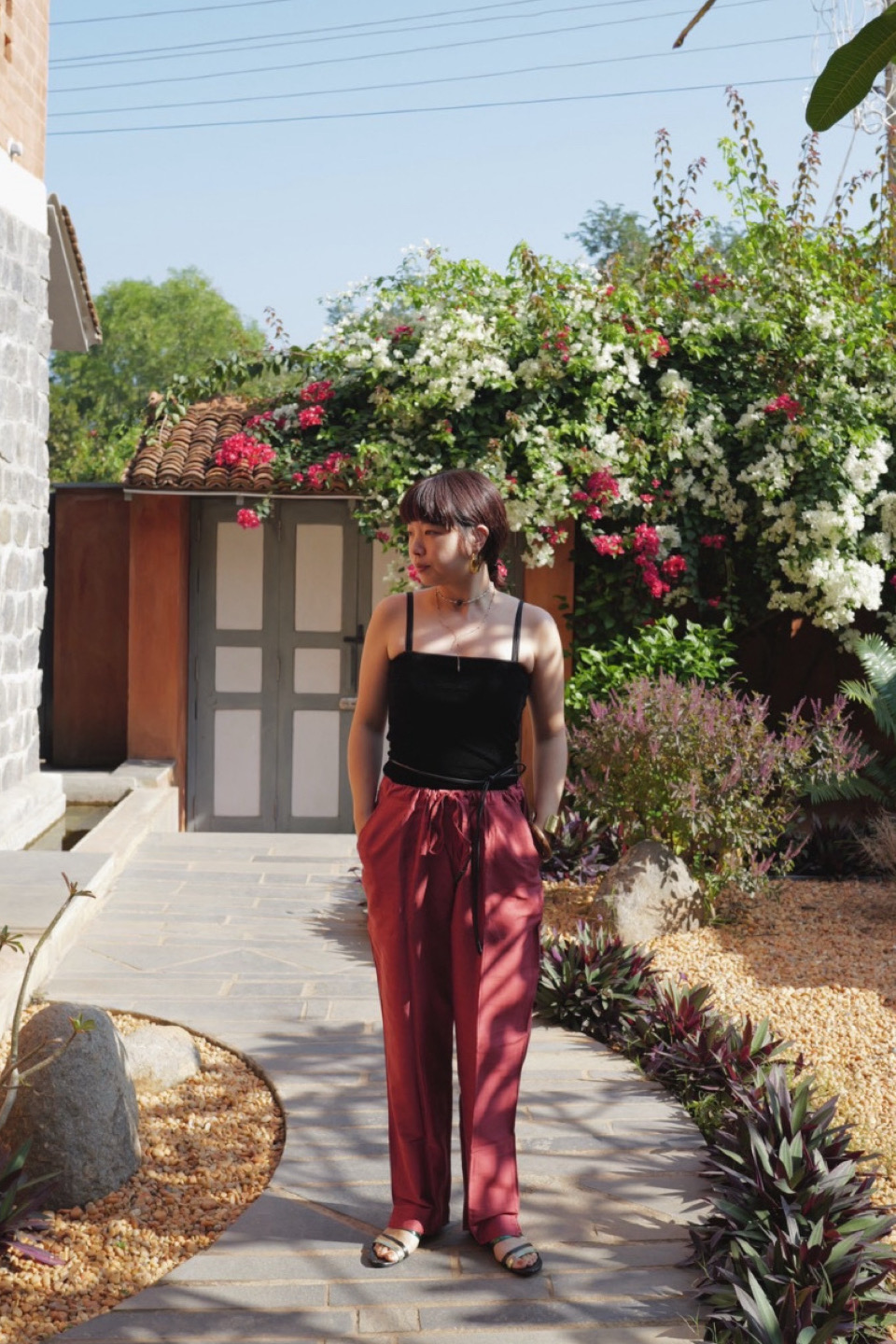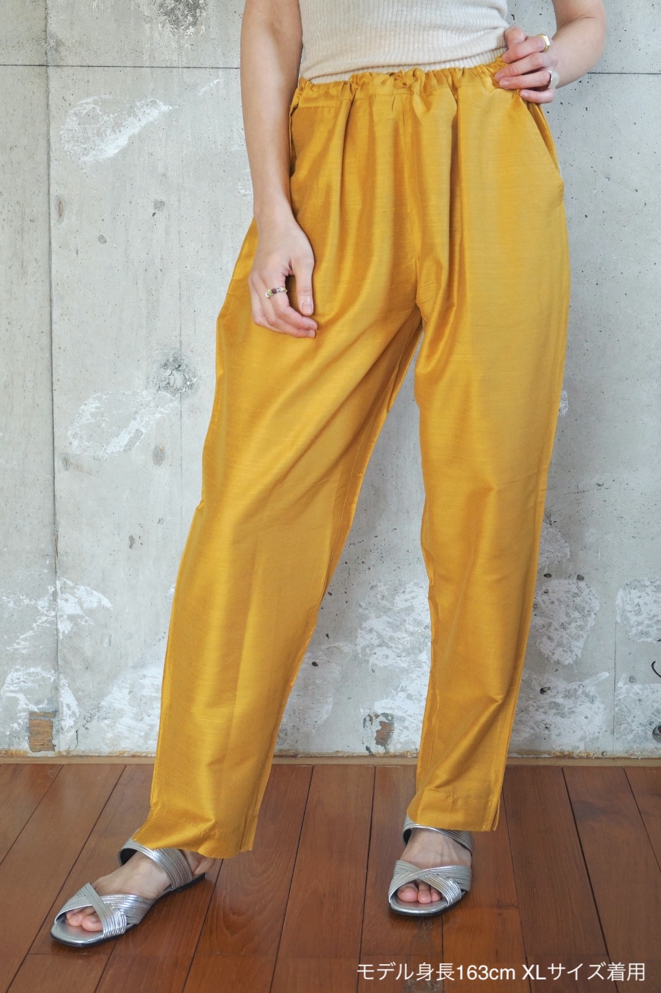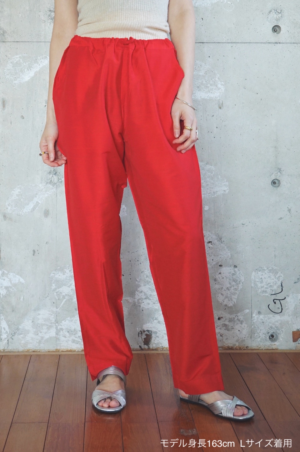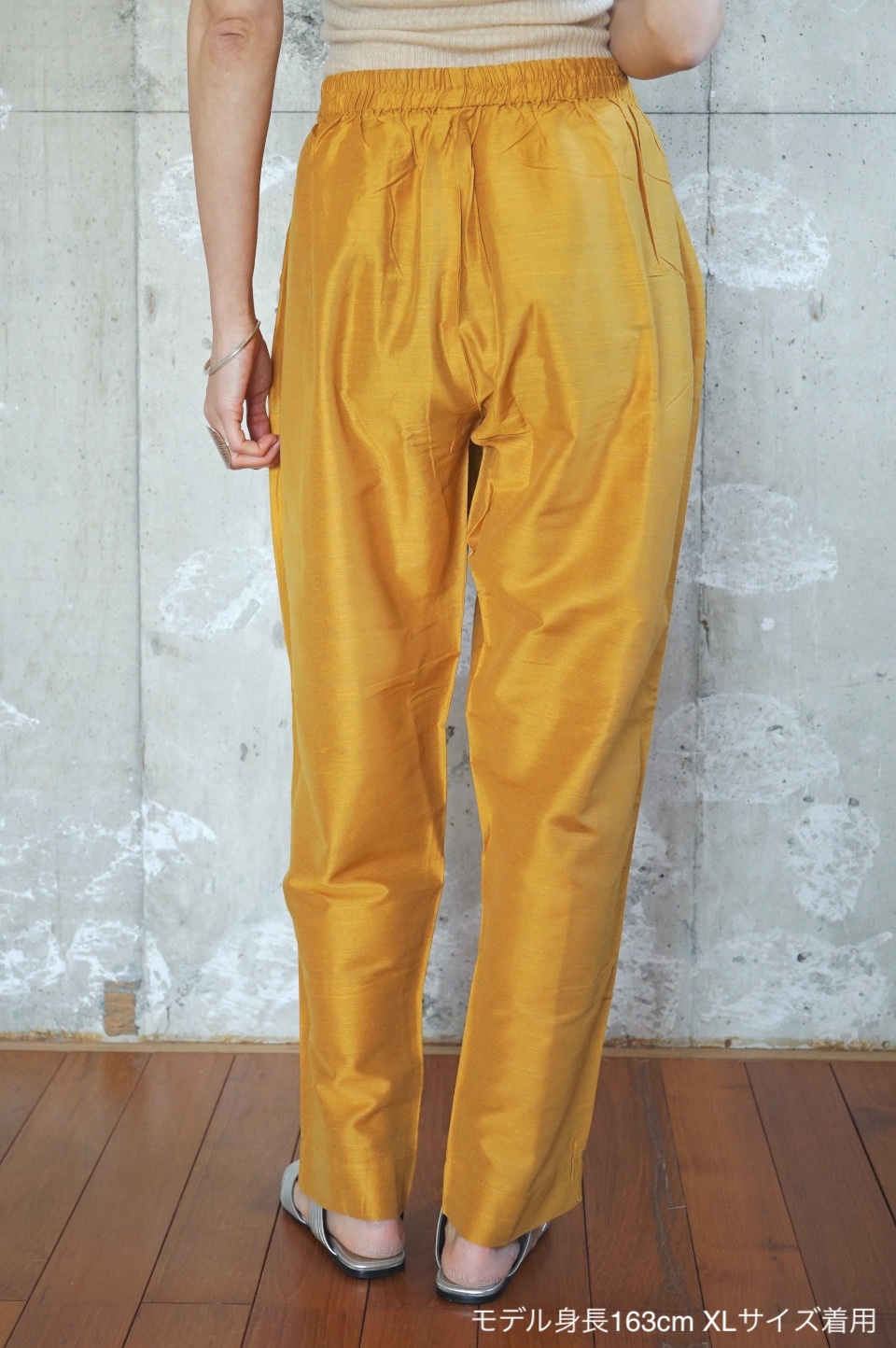 eriが南インドの旅で出会ったシルク素材のパンツが