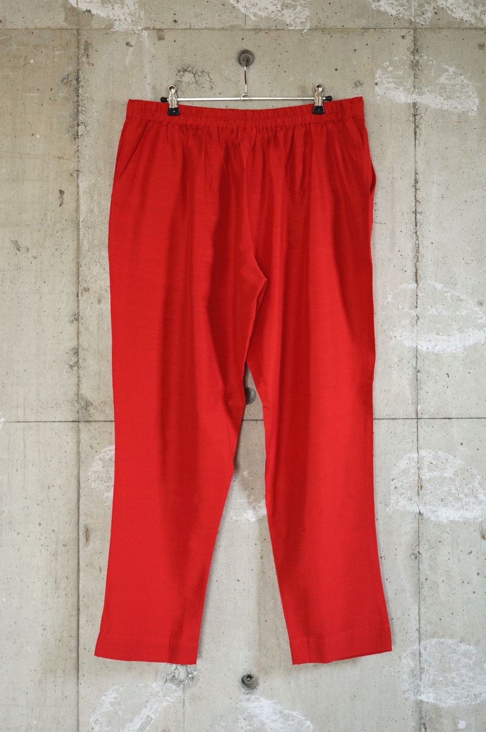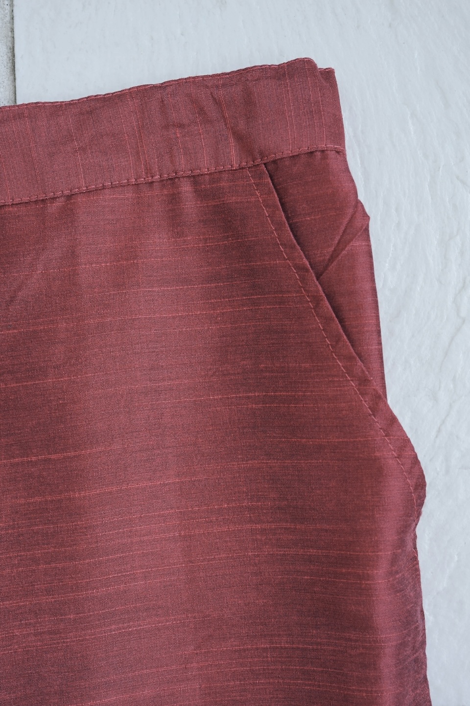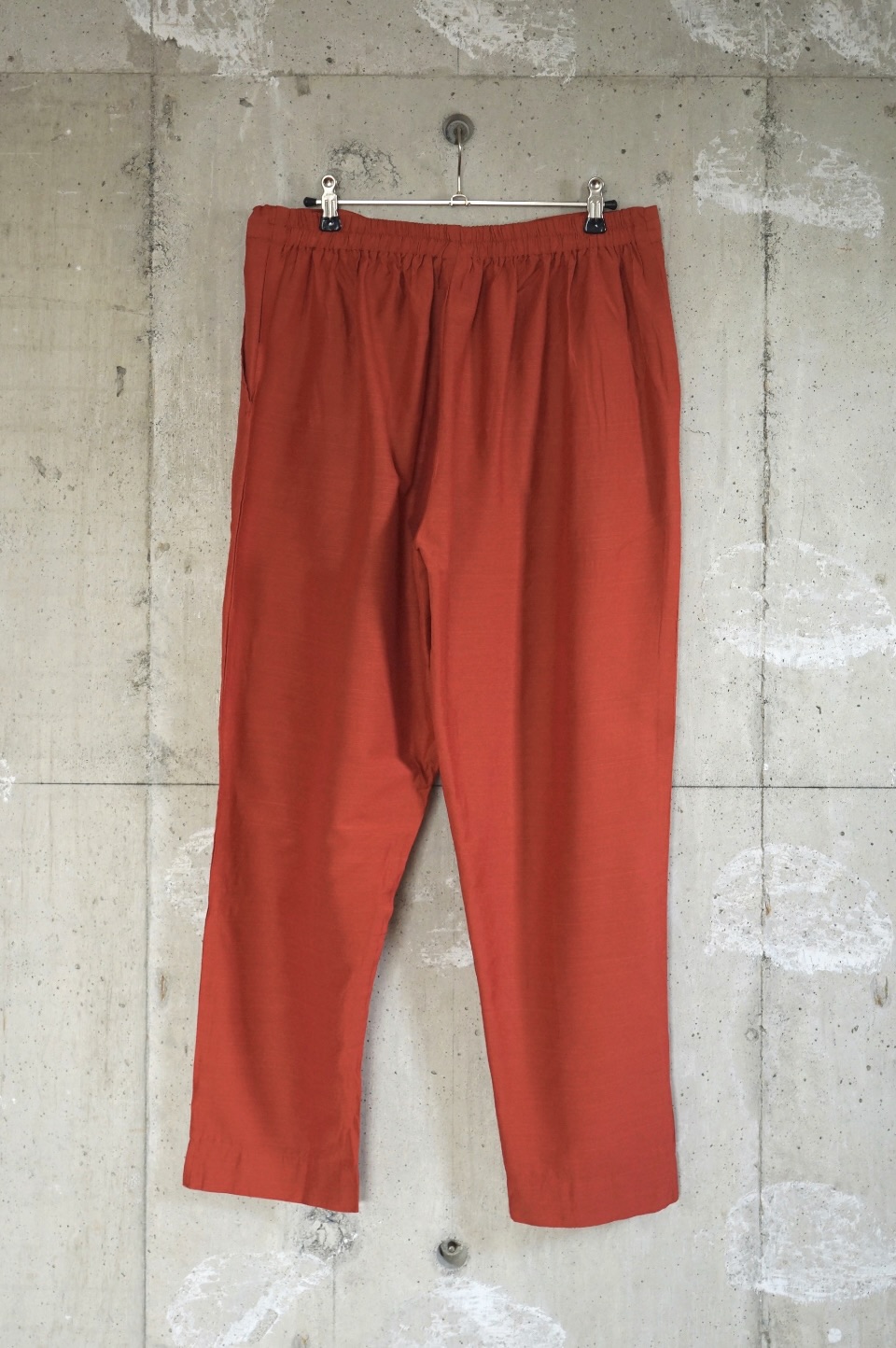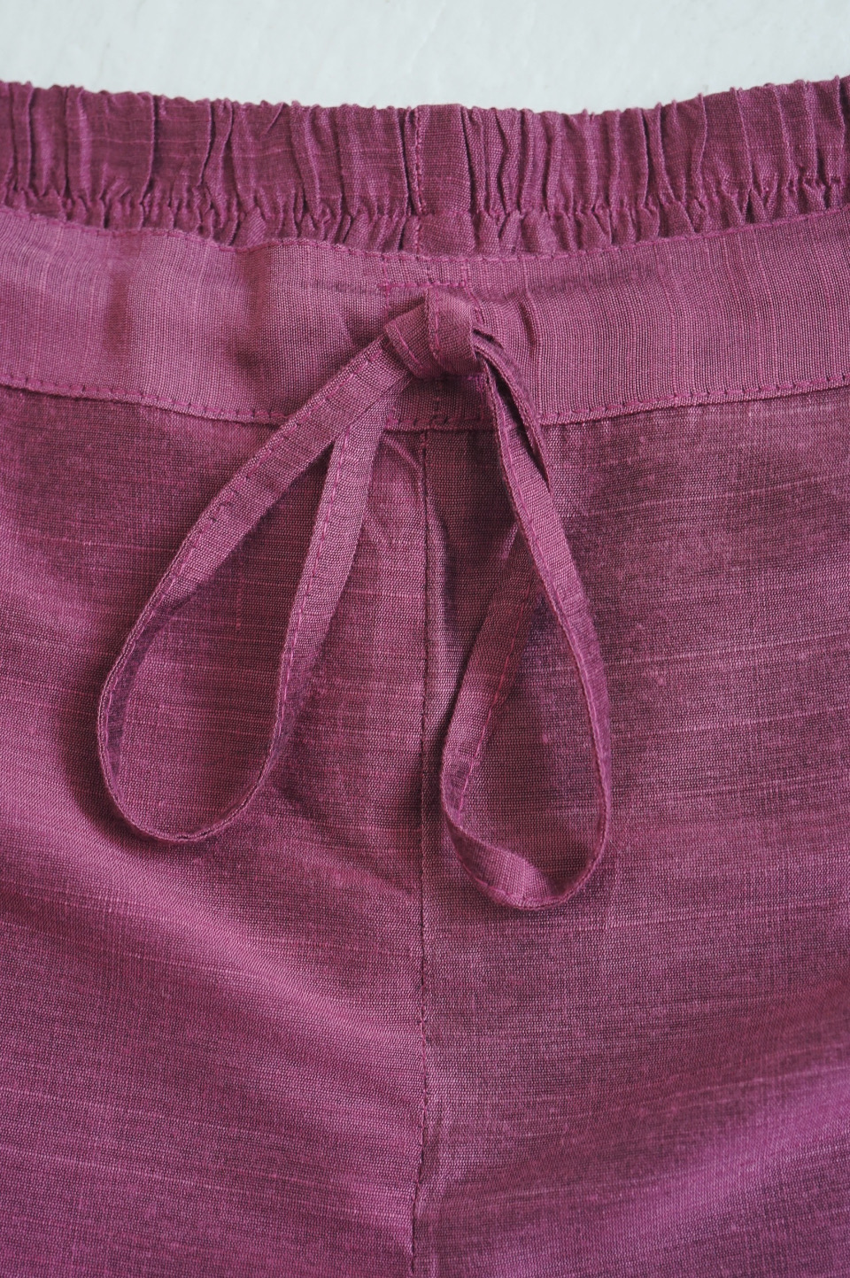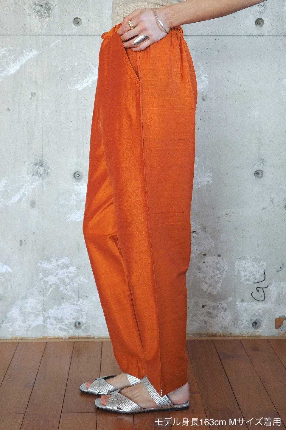 スラブ糸による表情豊かな質感が魅力のシルク素材のパンツ