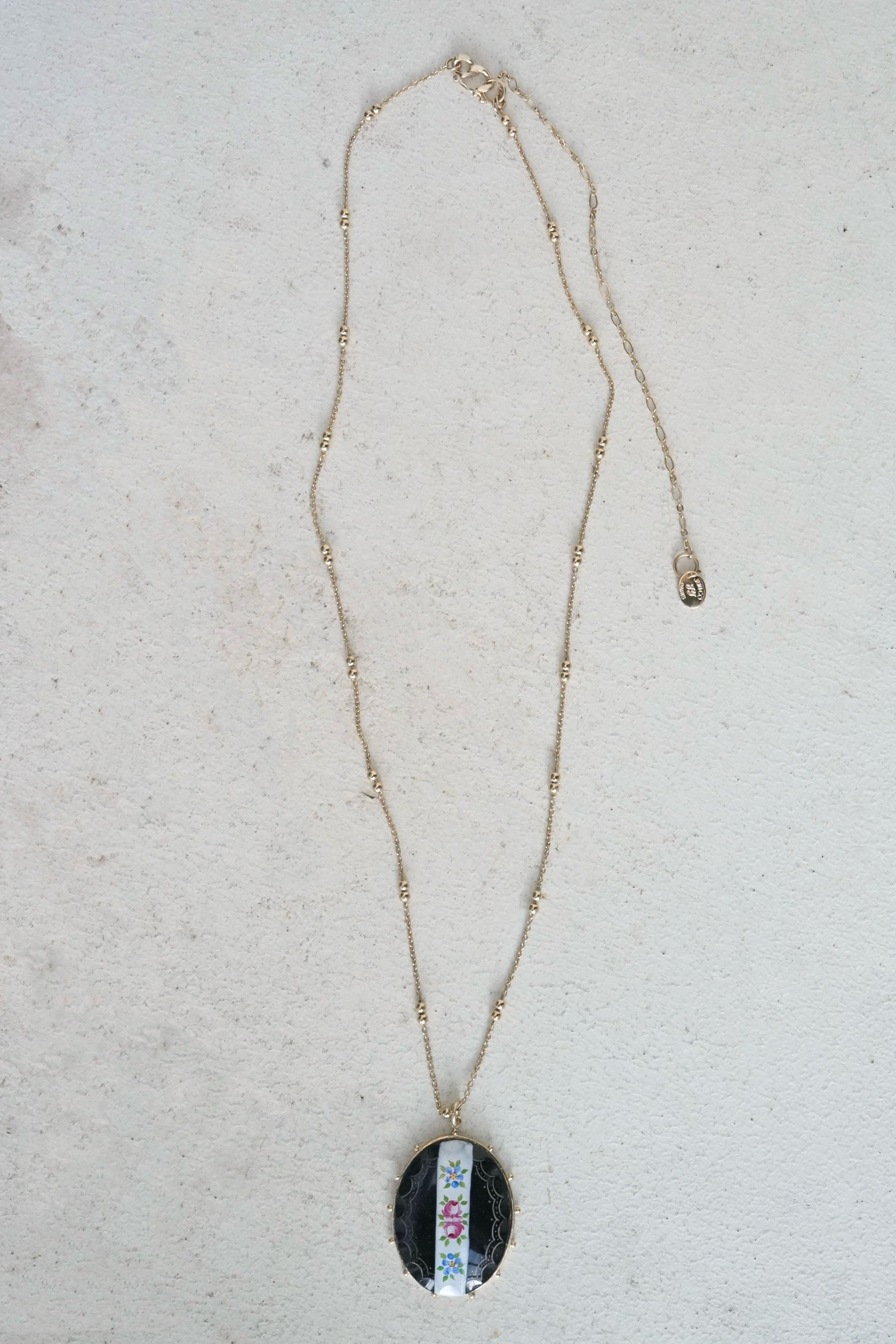 Flower Painted Oval Necklace